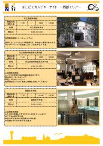 ・バスルートについては、カルチャーナイトリーフレット(2枚目カルチャーナイトマップ)をご確認下さい。